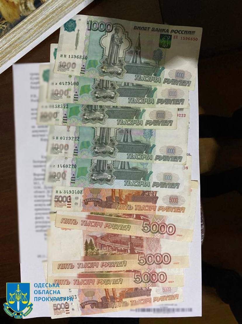 У ході санкціонованих обшуків у чоловіка вилучили російські рублі та формений одяг із білою пов’язкою – таку окупанти використовували на початку повномасштабного нападу. Також встановлено факт підтримки контактів із представниками пвк "Вагнер" та московського ОМОНу (спецпідрозділу росгвардії, який бере активну участь у війні проти України).