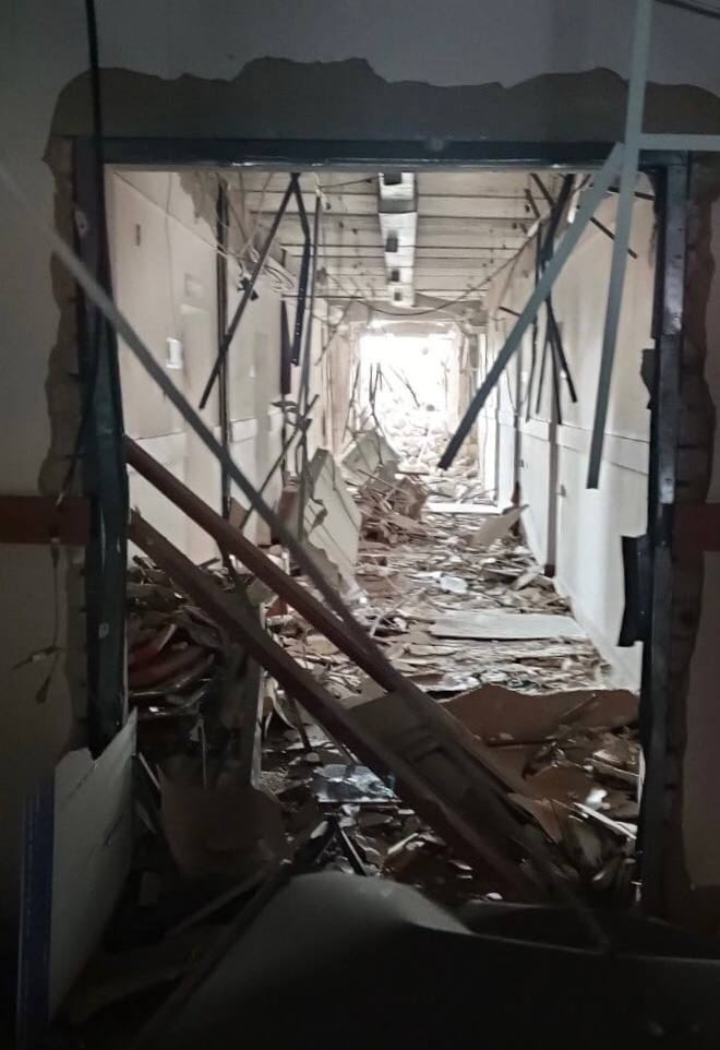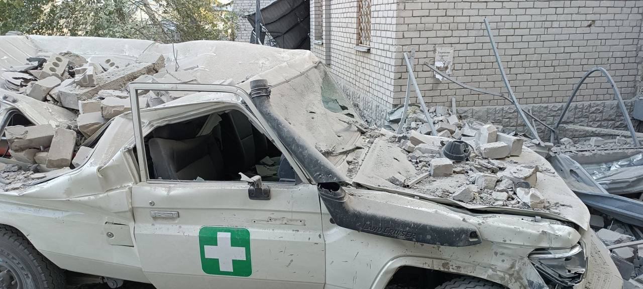 Снаряди поцілили по лікарні та станції екстреної медичної допомоги. Частково зруйновано корпус лікарні.