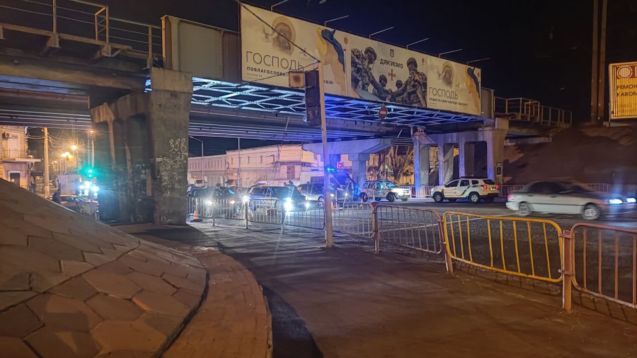 Заначимо, що через шлагбаум в бік житлового масиву "Селище Котовського" утворився затор. Біля конструкції стояли поліцейські з автоматами та автівка "Швидкої допомоги".