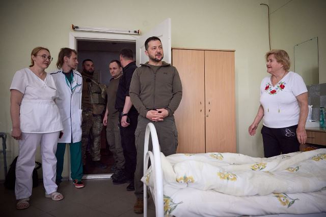 "Ви зараз проходите це важке випробування. Ми допоможемо, і все, що треба відновити, ми відбудуємо. Дякую вам і бажаю здоров’я. Хочу подякувати всьому персоналу медзакладу за роботу навіть під обстрілами. Ви – героїчні люди", – відзначив президент.