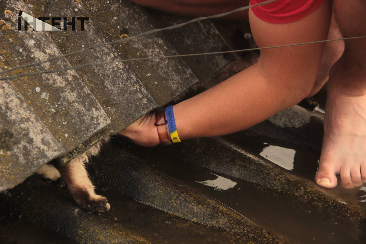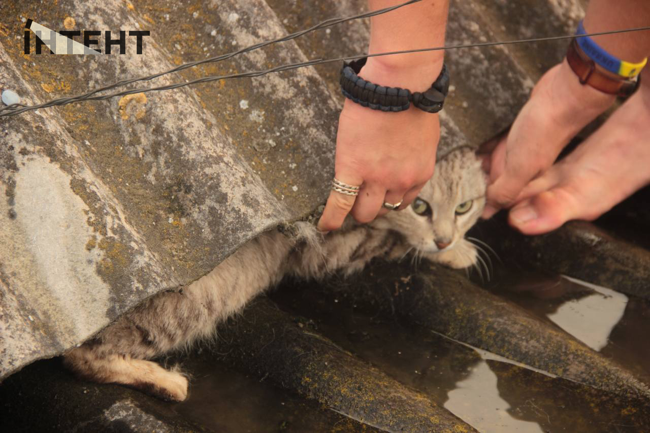Іван рятує кота. ФОТО: Інтент/Альбіна Карман