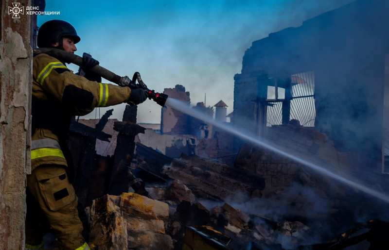 Також 17 червня армія рф вкотре атакувала житлові квартали м.Херсон. Від влучання боєприпасу загорілась покинута будівля. Рятувальники швидко прибули на місце події та під час гасіння пожежі ворожі війська почали повторно завдавати удари по вогнеборцях. З особового складу ніхто не постраждав. Пожежу вдалось загасити.
