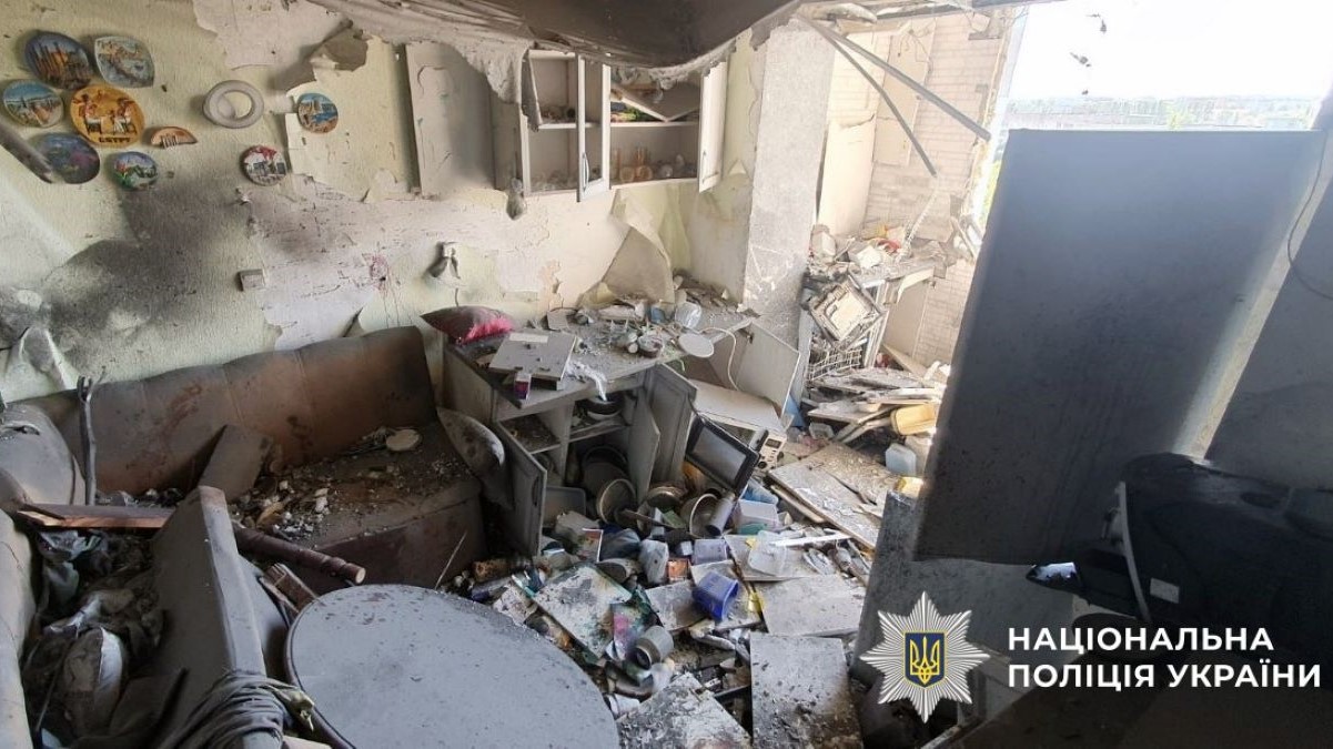 Пошкоджена багатоповерхівка, Херсон. ФОТО: Нацполіція