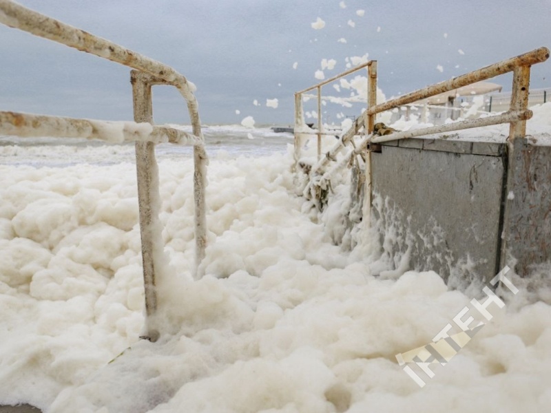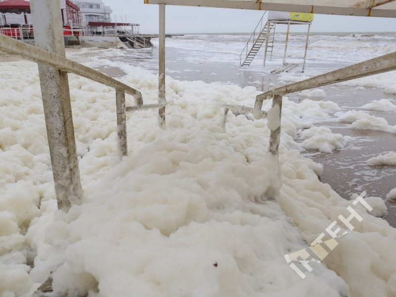 11 січня погодні умови в Одесі важко назвати приємними: температура близько нуля та пориви вітру до 8 метрів на секунду. Але саме такі умови є ідеальними для того, щоб море перетворилось у справжній генератор піни!