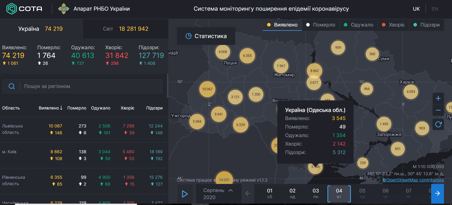 Как следует из оперативных данных Совета национальной безопасности и обороны Украины, в регионе с начала пандемии насчитывается 3 тысячи 545 случаев инфицирования коронавирусом. Болеют - 2 тысячи 142, а выздоровели - 1 тысяча 354 пациента.