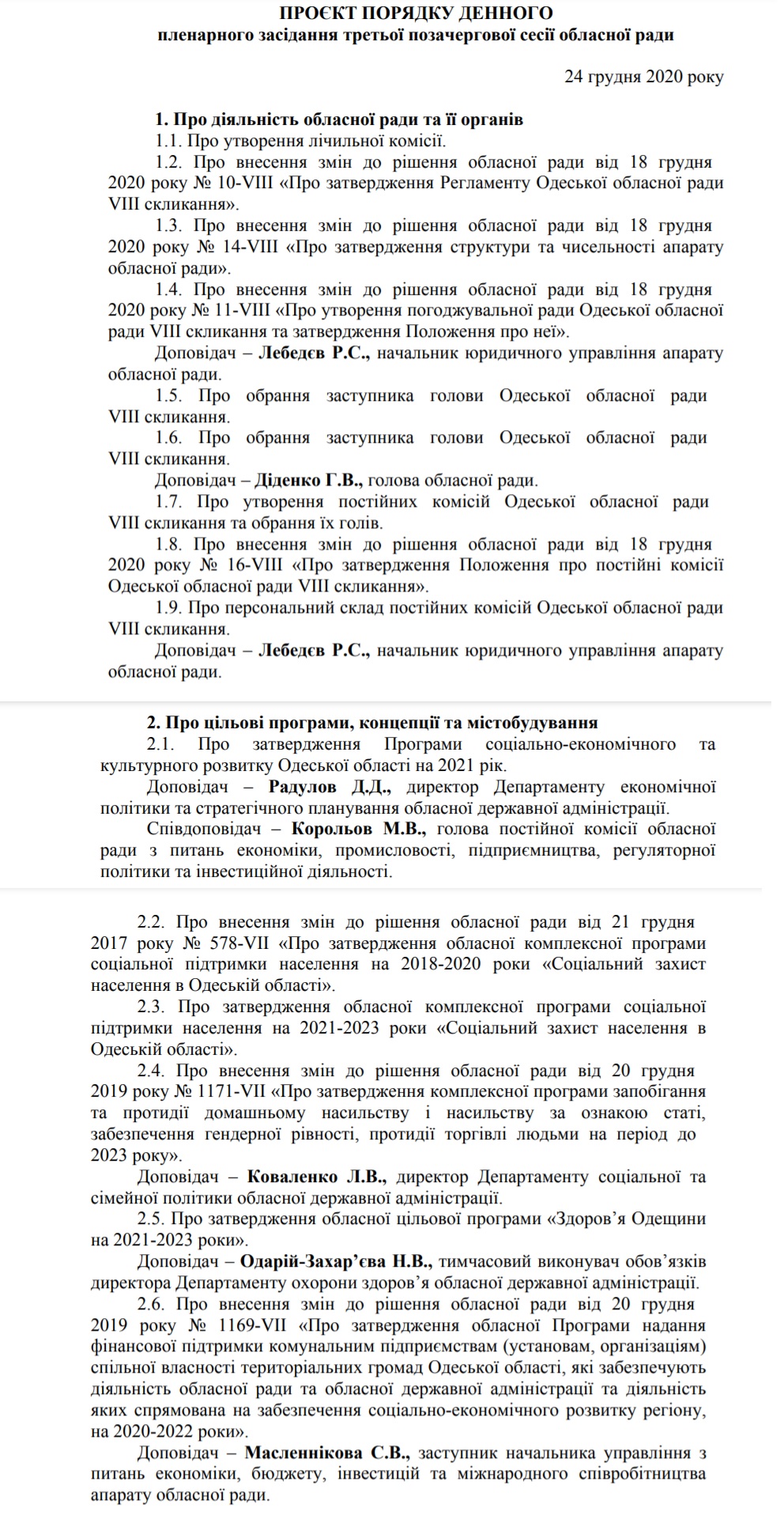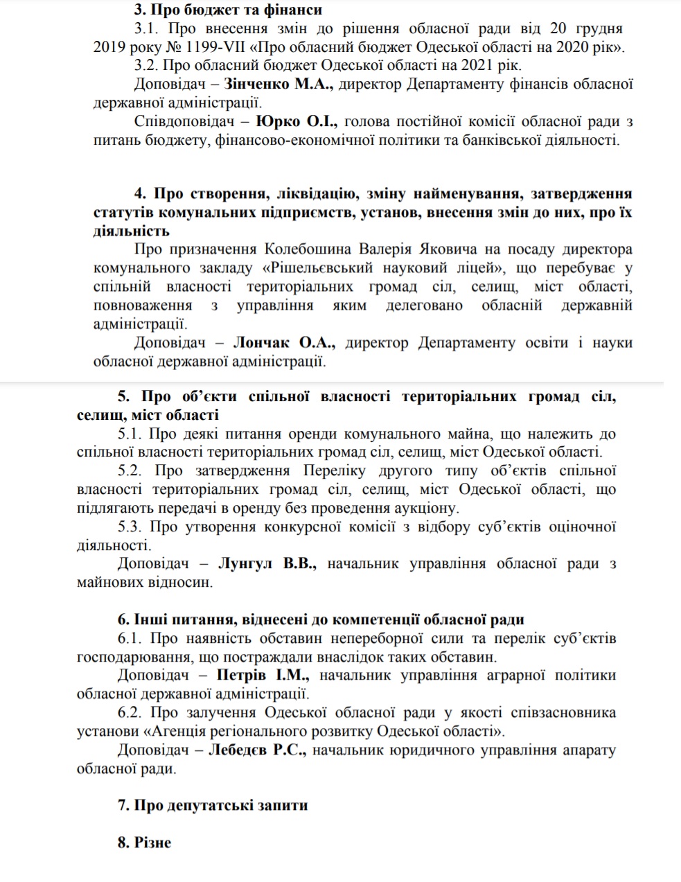 Порядок денний наразі виглядає так: