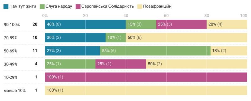 Найгірші оцінки отримали два позафракційні депутати — Михайло Опанащенко, Антон Хмаро.