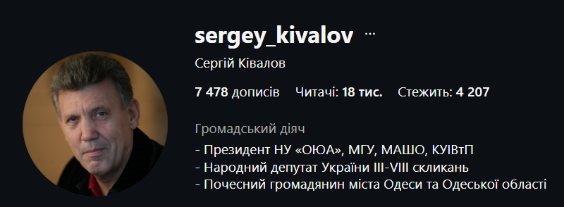 Сергій Ківалов – народний депутат України III-VIII скликань, ексголова Центральної виборчої комісії під час президентських виборів 2004 року, які вилилися в Помаранчеву революцію. Ексректор Національного університету “Одеська юридична академія”. Нині - почесний президент НУ ОЮА і почесний громадянин Одеси та області.