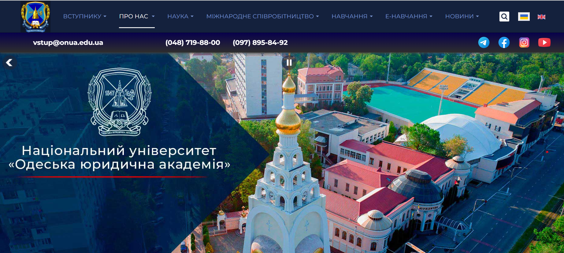 Головна картинка сайту НУ ОЮА. ФОТО: Скрин сайту
