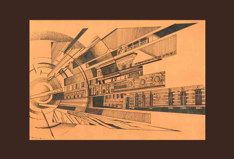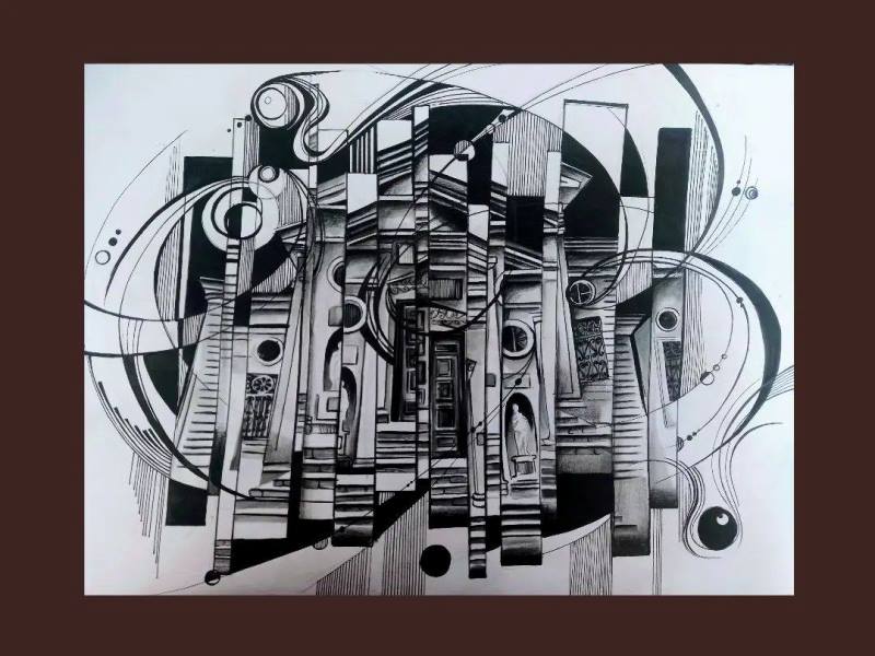 "Серія "Архітектура прифронтового міста" – це емоційна карта Херсона, який живе попри війну. На полотнах оживають знайомі всім херсонцям будівлі, мости, пам’ятки. Вони зображені в стилі, який інтегрує в собі архітектурну графіку з елементами футуризму та конструктивізму. Я використовую туш і лайнери, перспективу та штрихування. Таким чином абстрактні образи переплітаються з реальними архітектурними формами, показуючи контраст між крихкістю людських емоцій і стійкістю міста. Ці роботи про зранене, але нескорене місто, про пам’ять, про здатність вистояти", – ділиться художниця.