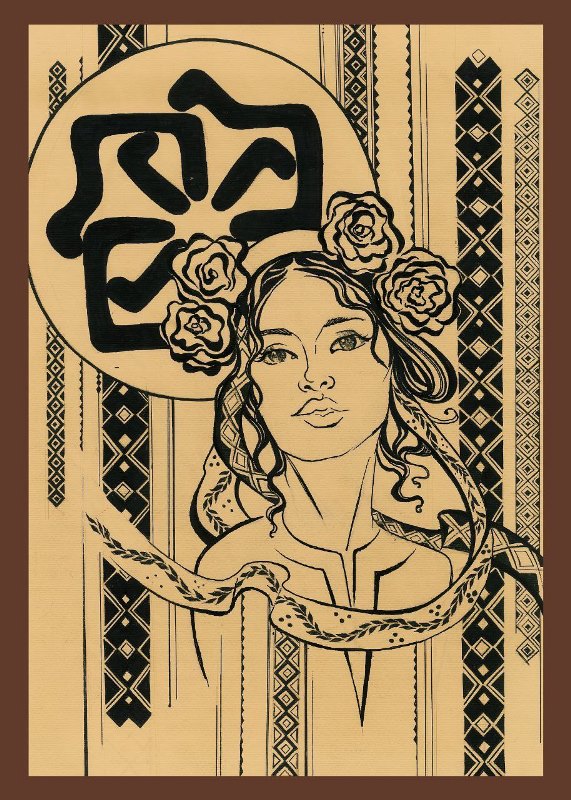 А ось цикл графічних робіт "Етнічні мотиви" створений набагато раніше та містить вісім картин. Усі вони висвітлюють образи жінок-берегинь у вишиванках зі старослов’янськими символами, притаманні саме жіночій енергії та силі.
