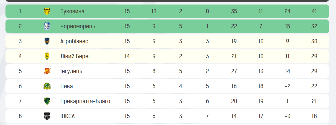 Турнірна таблиця Першої ліги. СКРИНШОТ: pfl.ua