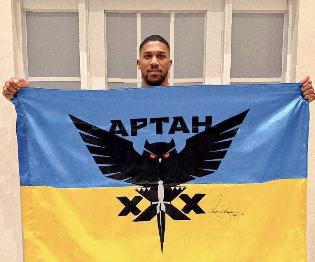 - Британський боксер-суперважковаговик Ентоні Джошуа, який двічі за кар'єру бився з Олександром Усиком, а також перемагав Володимира Кличка, у виставковому матчі нокаутував блогера та боксера-аматора Джейка Пола, який перед тим заявляв, що зацікавлений у поєдинку з тим же Усиком за правилами ММА. Але увагу пригорнуло не фото з рингу, а світлина, зроблена після бою, на якій Джошуа тримає прапор України із логотипом одного зі спецпідрозділів ГУР МО.
