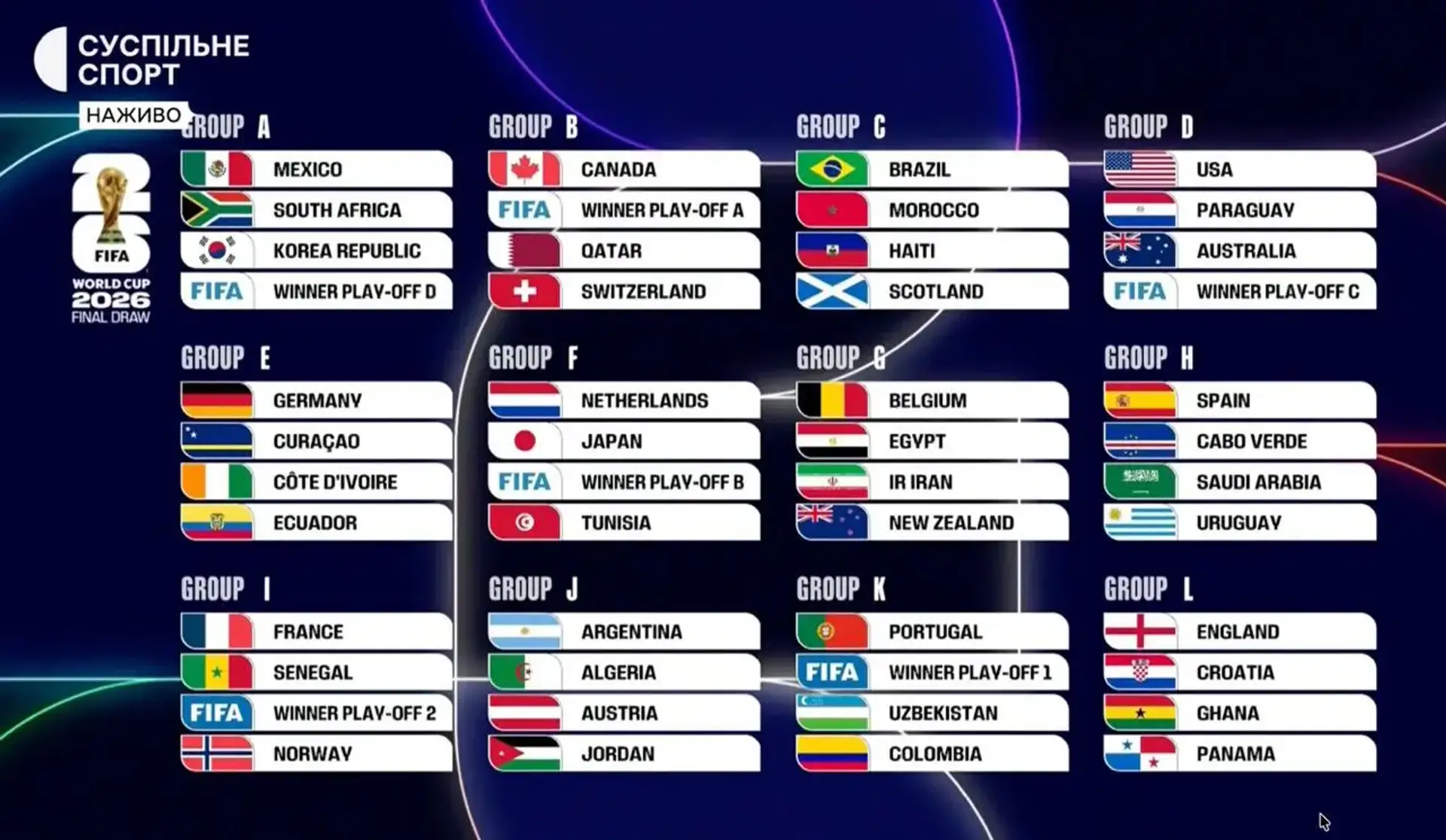- Збірна України з футболу дізналася імена гіпотетичних суперників на чемпіонаті світу. Якщо українці пройдуть шведів, а також переможців пари Польща — Албанія, на самому ЧС зможуть зіграти проти Нідерландів, Тунісу та Японії
