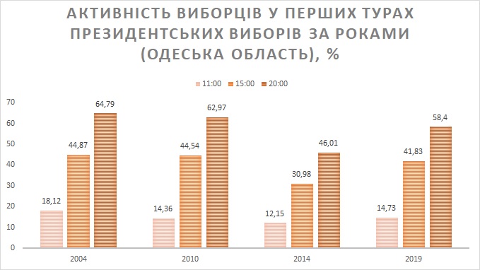 Президентські вибори, перший тур яких відбувся 31 березня, позначився в Одеській області більш високою явкою, порівняно з попередніми президентськими перегонами, та дещо кращою роботою виборчих комісій.