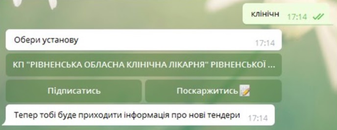 Обравши лікарню, побачите, які товари чи послуги вона купувала, коли це відбулося та скільки пішло грошей. Недолік в тому, що в «розмові з ботом» не завжди достеменно зрозуміло, що саме закупили.