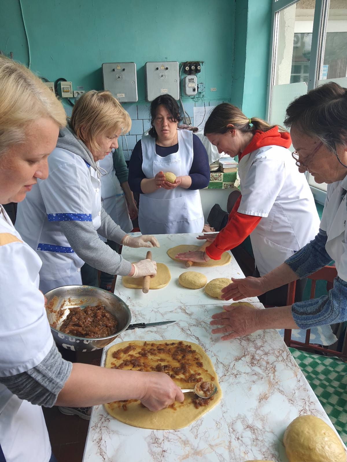 Знайомі порадили нам звернутися до Громадського центру правосуддя. Тут ми познайомилися з його очільником Леонідом Григоровичем Семененком. Його зацікавила моя освіта психолога, адже це дійсно дуже важлива професія. Ми обговорили з ним ідеї щодо залучення переселенців до соціальної діяльності, відвідали заклади громади, побували в мерії, бібліотеці, поліклініці, центрі зайнятості тощо. У результаті мене працевлаштували до відділу освіти на посаду психолога. Також ми створили групу «Готуємо разом» для жінок-переселенок. Тричі на тиждень ми готуємо здобу, пельмені та вареники, на Великдень робили паски, і потім розповсюджуємо їжу серед переселенців у громаді. Так ми спілкуємося, знайомимося, і вже потоваришували.