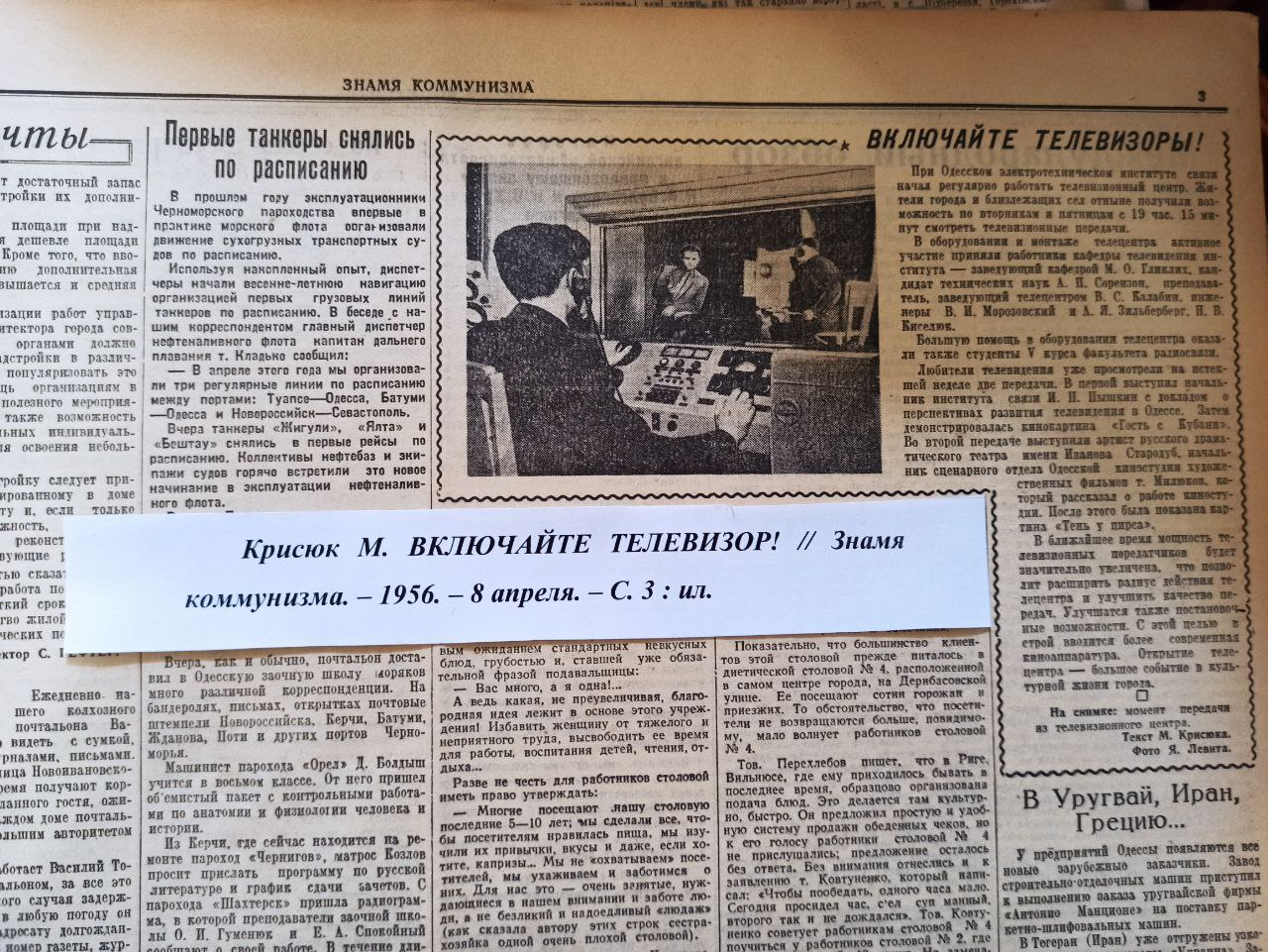 Продюсерка Олена Кваша каже, що знайшла цікаву дату: перший експериментальний ефір відбувся в 1956 році: