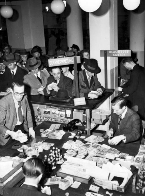 Обмін старих грошей у Гамбурзі у червні 1948 року. ФОТО: https://wwii.space/