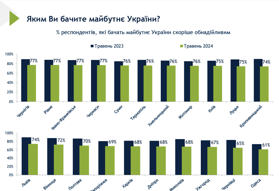 **Херсон був виключений з вибірки у 2024 році через безпекову ситуацію, яка унеможливлювала особисте опитування (світло-зелений).