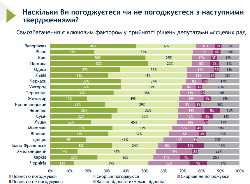 Одесити бачать себе внизу рейтингів, коли відповідають на питання щодо того, в правильному чи неправильному напрямку йдуть справи у місті, як зміниться економічне становище в державі в цілому, яка економічна ситуація в сім'ї. Також більшість містян невисоко оцінюють поінформованість про діяльність місцевої влади, вважають, що самозбагачення є ключовим фактором при прийнятті рішень депутатами місцевих рад, але коли йдеться про те, чи схвалюють діяльність міської влади та чи схвалюють діяльність міського голови, то тут вже Одеса в першій половині таблиці. 35% одеситів вважають, що Геннадія Труханова потрібно переобрати на наступний термін. З чим це може бути пов’язано, ми попросили прокоментувати голову Одеської обласної організації ВГО "Комітет виборців України" Анатолія Бойка.