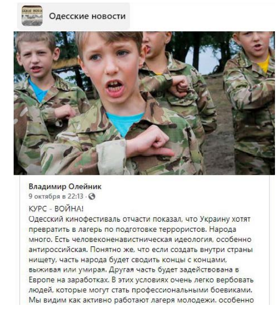Так, через ФБ-паблік «Одеса регіон Новини Одеси та Одеської області» поширили дезінформацію щодо того, що «Україну хочуть перетворити у табір для підготовки терористів», «асоціація Україна-ЄС тріснула» тощо.