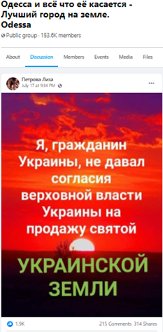 Варто додати, що у зв’язку з опублікуванням 15 липня Конституційним судом тексту рішення про визнання конституційним закону «Про забезпечення функціонування української мови як державної» в одеських пабліках було поширено 6 дописів про "утискання" російської мови. У 7 дописах автори апелюють до історії міста та стверджують, що Одеса споконвічно (одне з улюблених слів російської пропаганди) була багатонаціональним та багатомовним містом і саме тому, "утиски" російської мови є неприпустимі.
