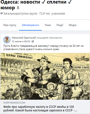 Численними також залишаються дописи з ностальгією за часами СРСР. Користувачі поширюють дописи про співвідношення заробітної плати до тарифів, якості обслуговування у медичних закладах та суцільну атмосферу "безпечного та стабільного життя".