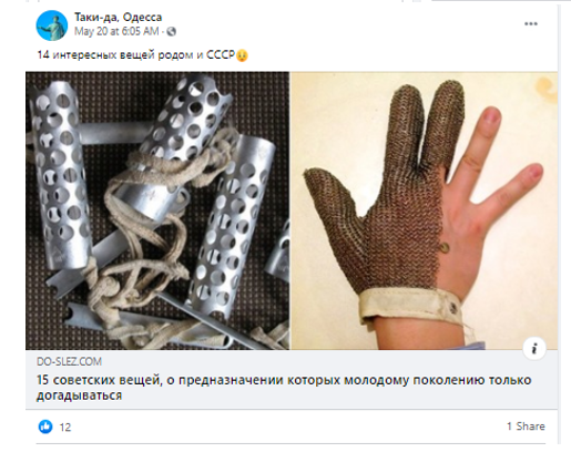 3) Наявність у тексті ностальгії за часами СРСР та Російської імперії. Твердження про єдність українського та російського народів тощо. Подання новин РФ як власне вітчизняних новин – 241 допис.