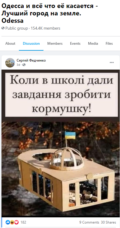- "Одесса: новости ✓ сплетни ✓ юмор ⇩", 74.5k підписників – 26 дописів. Сумарна взаємодія з дописами, що містять ознаки пропаганди: 2.026 лайків, 833 коментарі, 201 репост.