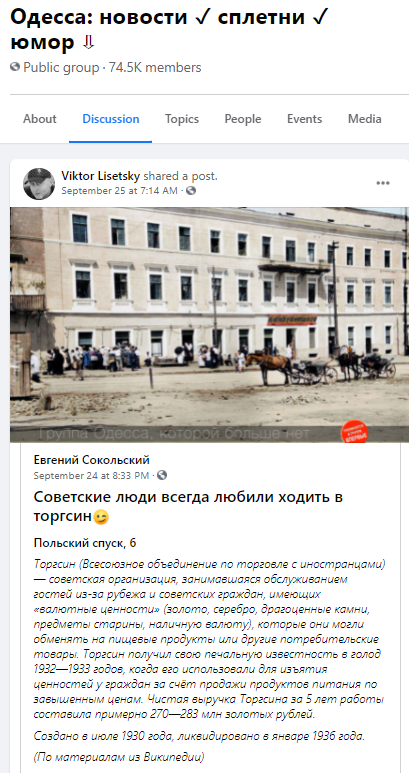 - "Я одессит, я из Одессы - здрасьте !", 11.1k підписників – 25 дописів. Сумарна взаємодія з дописами, що містять ознаки пропаганди: 1.893 лайків, 81 коментар, 142 репости.