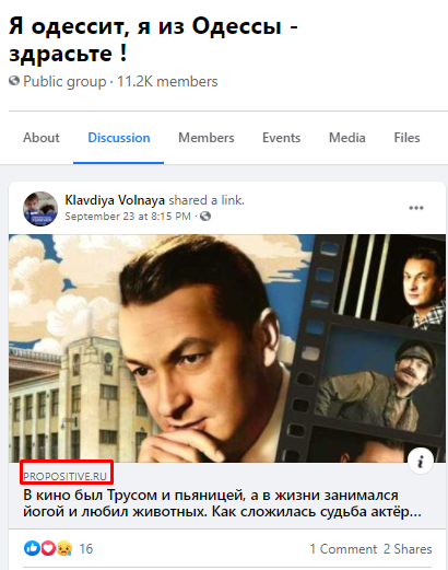 Наявність у тексті ностальгії за часами СРСР та Російської імперії. Твердження про єдність українського та російського народів тощо. Подання новин РФ як власне вітчизняних новин – 157 дописів.