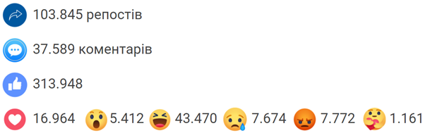 - 21.786 лайків, що складає 5.5% від усіх лайків тижня, або 58% від лайків усіх пропагандистських постів.