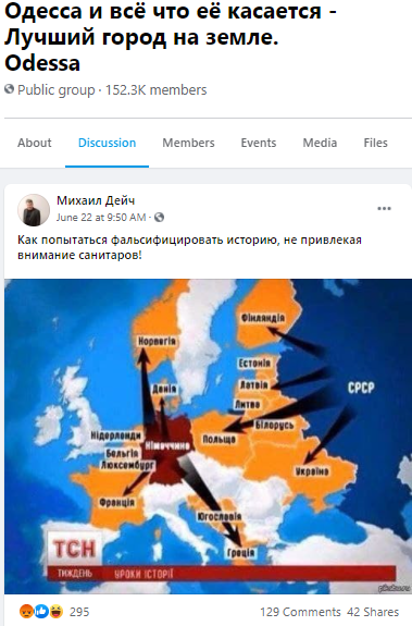 3) Наявність у тексті ностальгії за часами СРСР та Російської імперії. Твердження про єдність українського та російського народів тощо. Подання новин РФ як власне вітчизняних новин – 505 дописів.