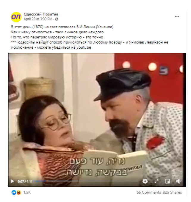 6 дописів у одеських пабліках нагадали користувачам мережі про День народження головного тоталітарного вождя світу – В. Леніна. У дописах цитували лідера більшовиків, наводили біографічні матеріали та окремі особливо важливі дати життя вождя, й лише в одному дописі висміювали.