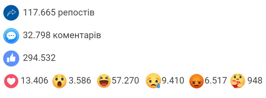 38.873 лайків, що складає 10% від усіх лайків тижня.