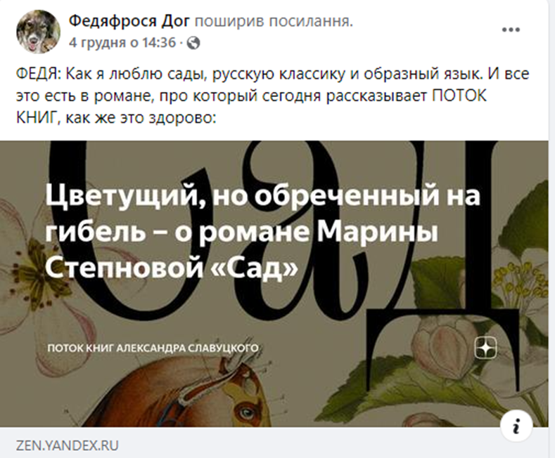 2) Наявність у тексті ностальгії за часами СРСР та Російської імперії. Твердження про єдність українського та російського народів тощо. Подання новин РФ як власне вітчизняних новин – 122 дописи.