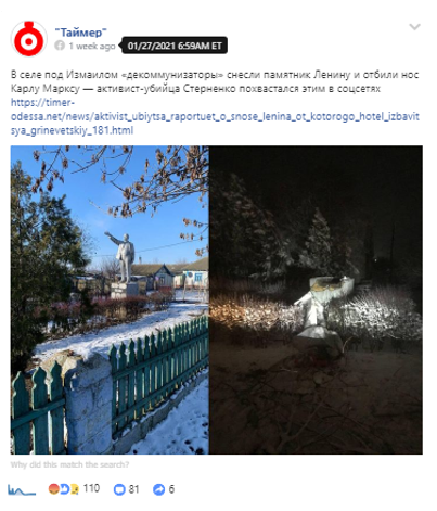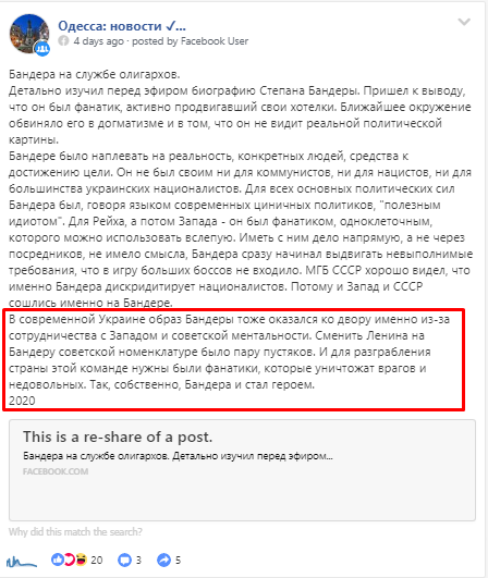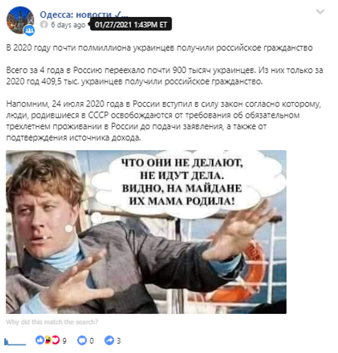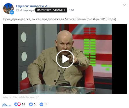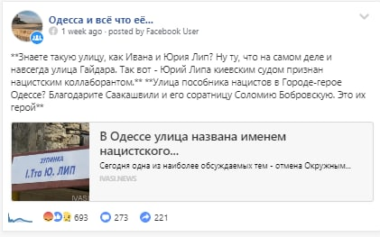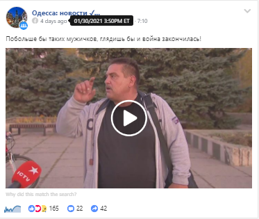 30 січня паблік «Одесса: новости, сплетни, юмор» поширив відеоінтерв'ю телеканалу ICTV від 4 листопада 2019 року. Журналіст запитав місцевого жителя його думку з приводу відводу військ, що відбувся на Донбасі.