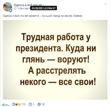 29 січня паблік «Одесса: новости, сплетни, юмор» репостить цей допис.