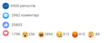 Сумарна кількість взаємодій з вказаними 12 дописами: