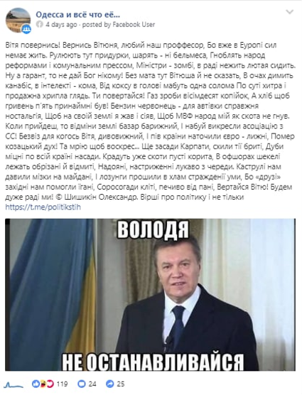29 січня паблік «Одесса: новости, сплетни, юмор» публікує допис з метою дискредитації Угоди про асоціацію між Україною та Європейським Союзом.
