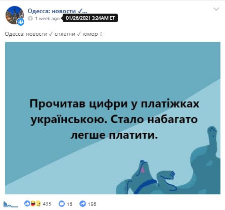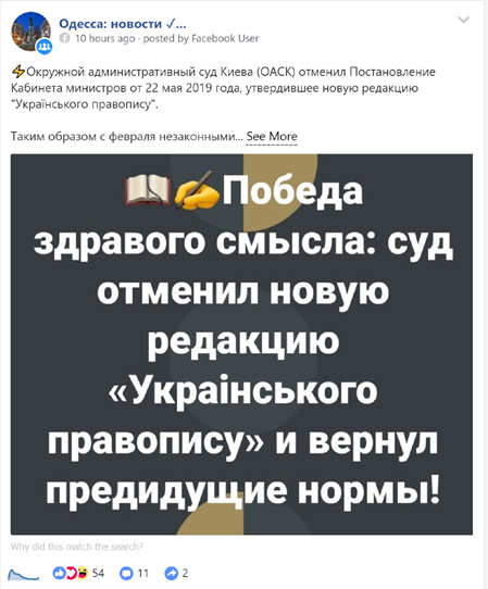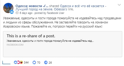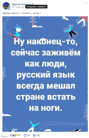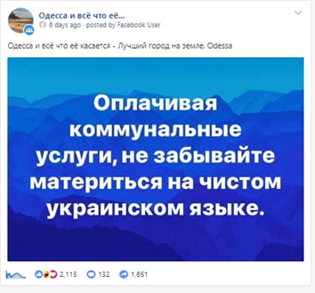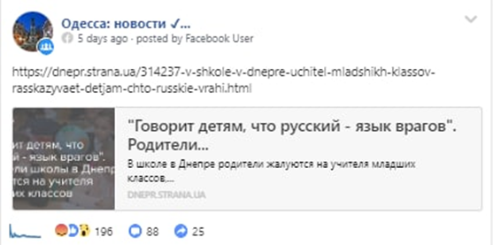 - Допис з висміюванням української мови та містить посилання на сайт з російським доменом – 1 допис.