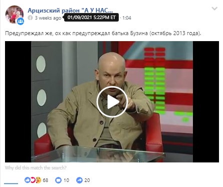 9 січня паблік «Арцизский район "А У НАС НА РАЙЕНЕ...."» (10,8 тисяч підписників) поширює відео Олеся Бузини кількарічної давнини, в якому публіцист критикує Угоду про асоціацію між Україною та Європейським Союзом.