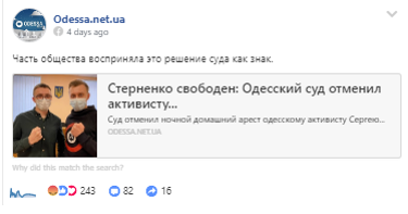 Висвітлення новини про скасування домашнього арешту одеському активісту Сергію Стерненку у мережі супроводжувалось порушенням журналістських стандартів та етики.