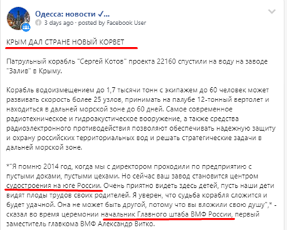 Паблік «Одесса: новости, сплетни, юмор» опублікував допис, який признає приналежність анексованого Криму території РФ.