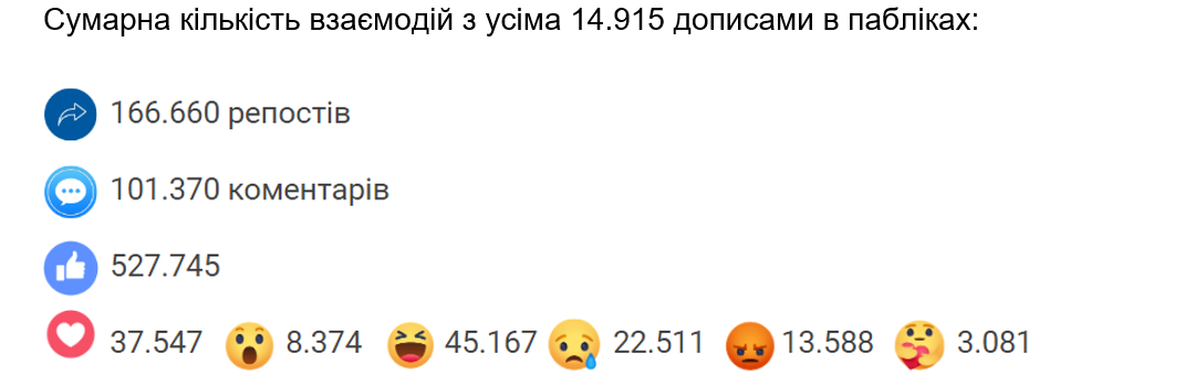 Сумарна кількість взаємодій з дописами, що містять ознаки пропаганди: