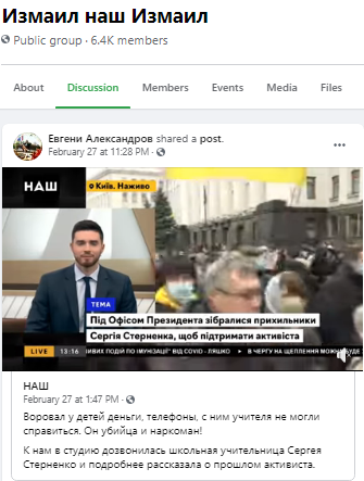 Поширювана одеськими пабліками риторика ресурсів ZIK, 112 Україна та NewsOne в основному стосувалась справи Стерненка та санкцій щодо "каналів Медведчука". Так журналісти забороненого медіа 112 Україна розмістили статтю з заголовком "Президент України санкціями проти телеканалів "112 Україна", NewsOne і ZiK, а також проти опозиційних політиків обманює ЄС дешевими прийомами, вбиваючи майбутнє своєї країни, - іспанські ЗМІ".