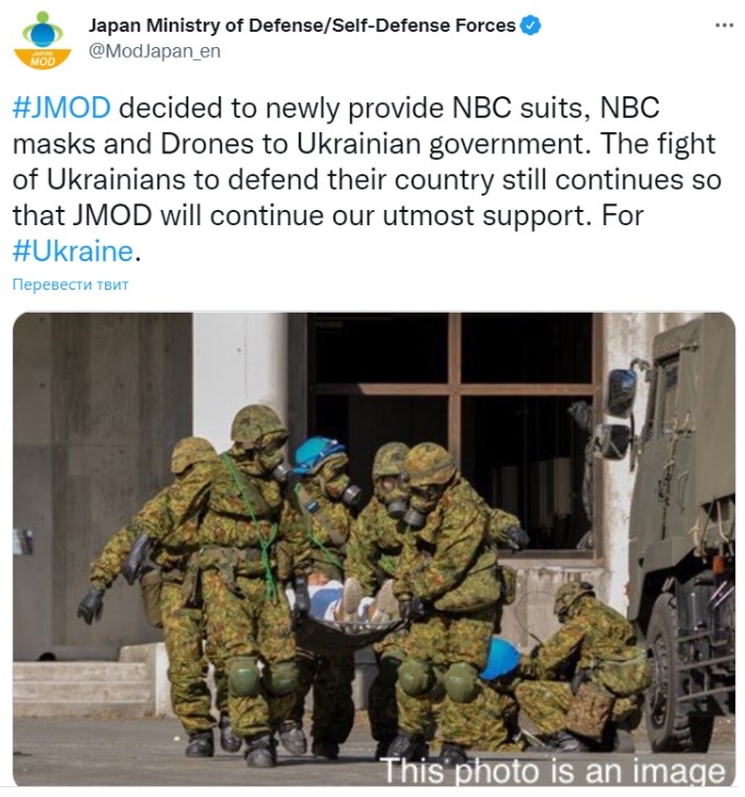 До того ж офіційний Токіо повідомив, що надасть Україні комплекти ядерного, біологічного та хімічного захисту (NBC), а також дрони в рамках допомоги нашій країні в протистоянні російській військовій агресії.