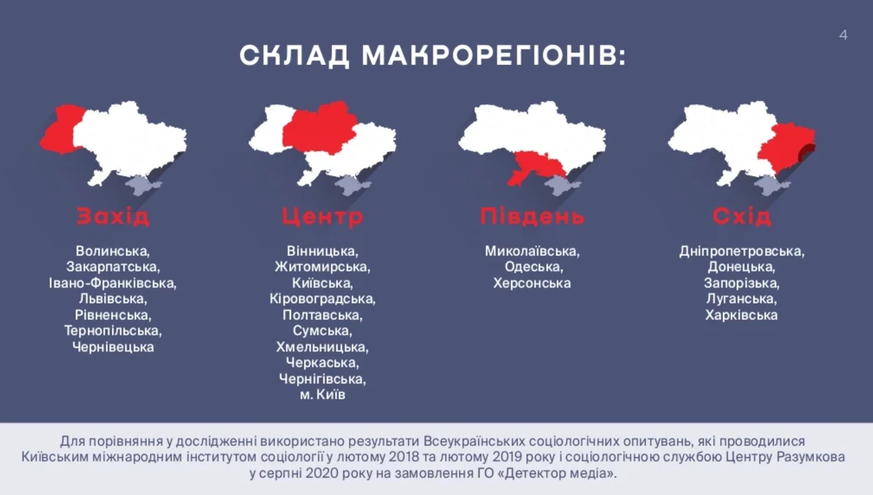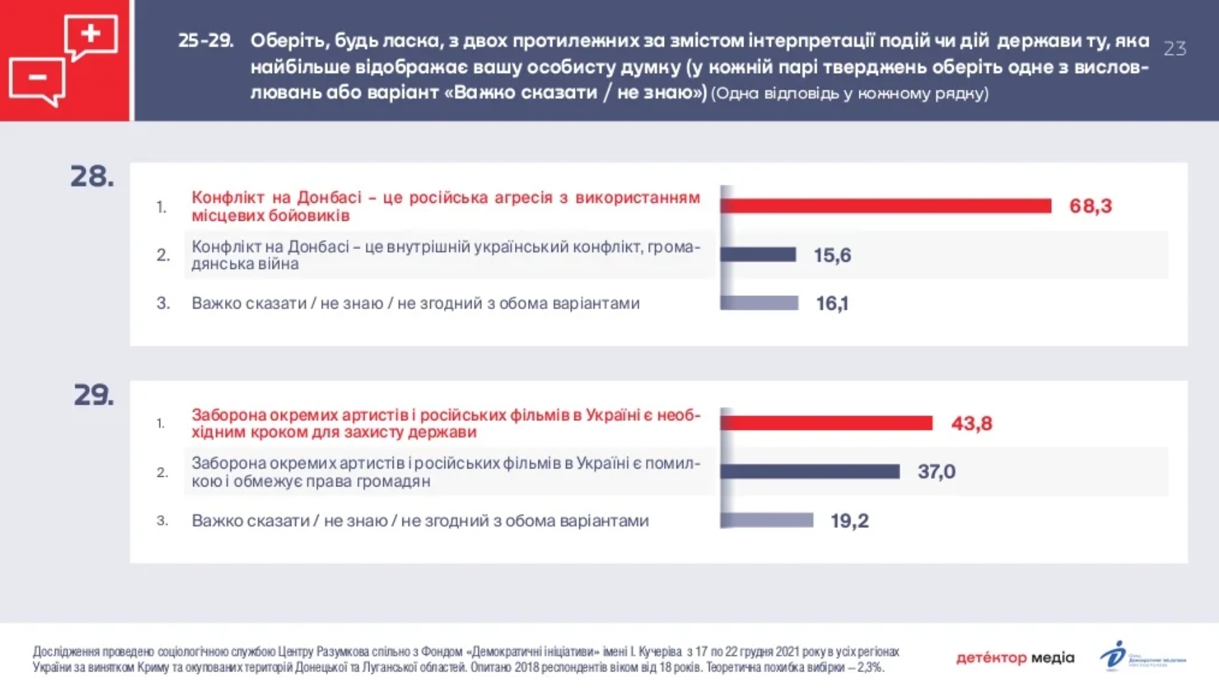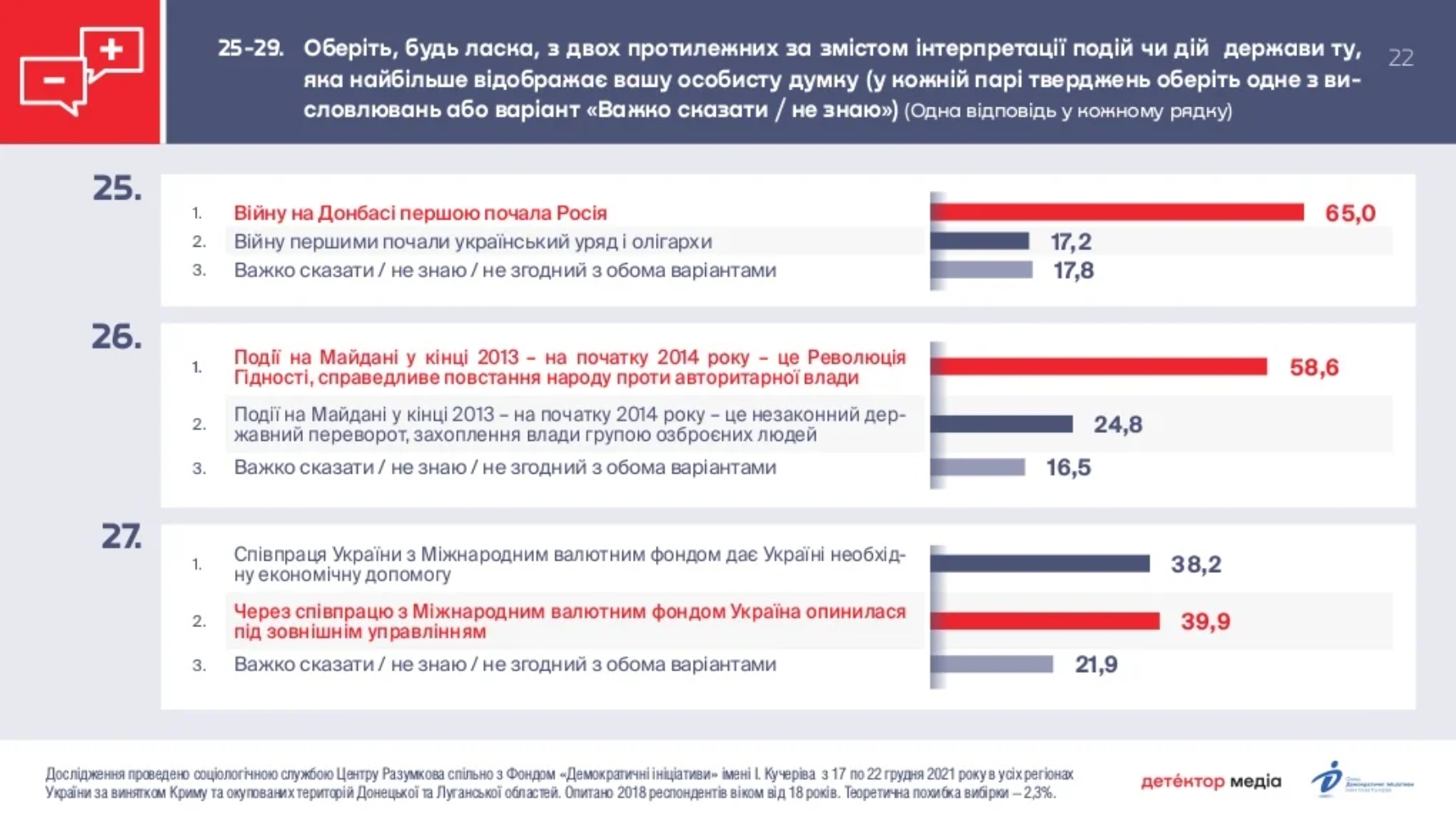Загальнонаціональне дослідження, проведене на замовлення ГО «Детектор медіа» Фондом «Демократичні ініціативи» імені Ілька Кучеріва спільно з соціологічною службою Центру Разумкова у період з 17 по 22 грудня 2021 року.