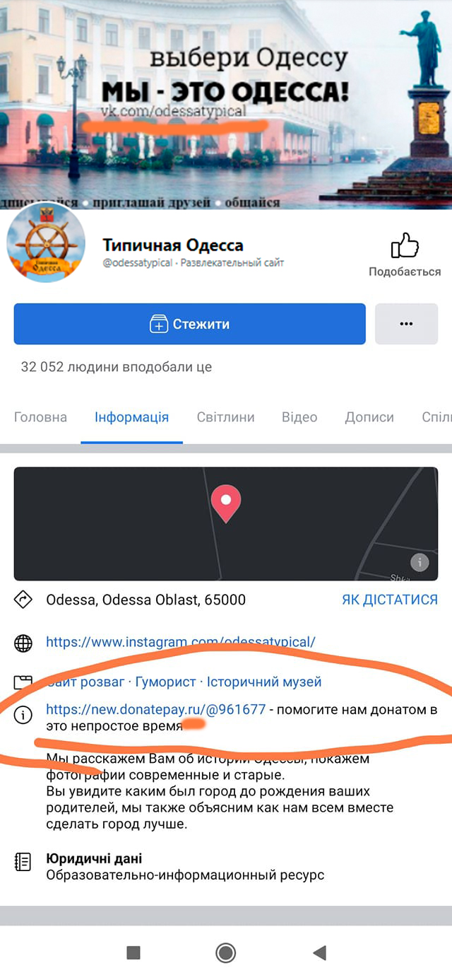 8. Уже не вперше в наших аналітичних дослідженнях своїми проросійськими висловлюваннями привертає увагу паблік «Типичная Одесса», який поряд з нейтральними регіональними матеріалами регулярно здійснює інформаційні пропагандистські атаки. Зауважимо, що ця група навіть не намагається приховувати своє проросійське коріння, активно просуваючи свою сторінку в російській соціальній мережі «вконтакте», а також закликаючи перераховувати донати на російські ресурси.